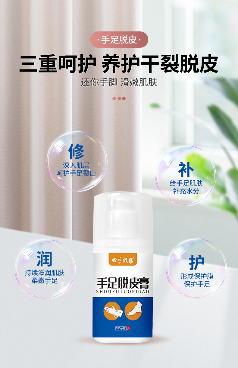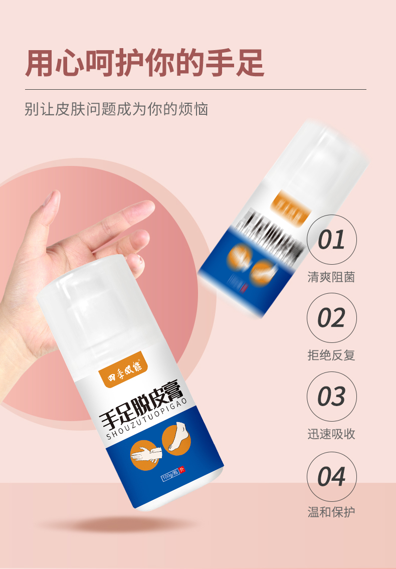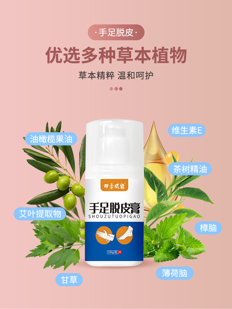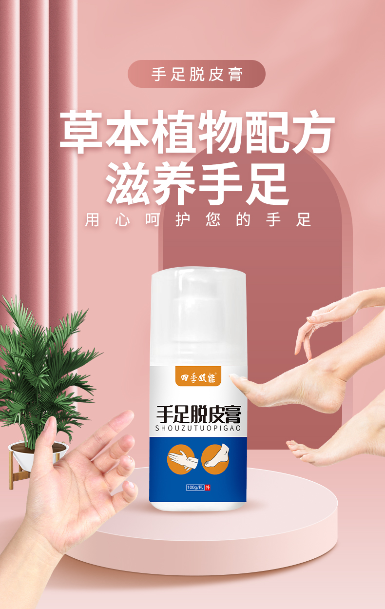 手足脫皮膏,選多種植物草本精粹,適用于手足皮膚不適的亞健康人群,給你的手足多重呵護,乳膏生產廠家,支持不同材質、規格、形狀、包裝設計,滿足多種渠道需求的膏劑加工一站式oem貼牌定制服務。