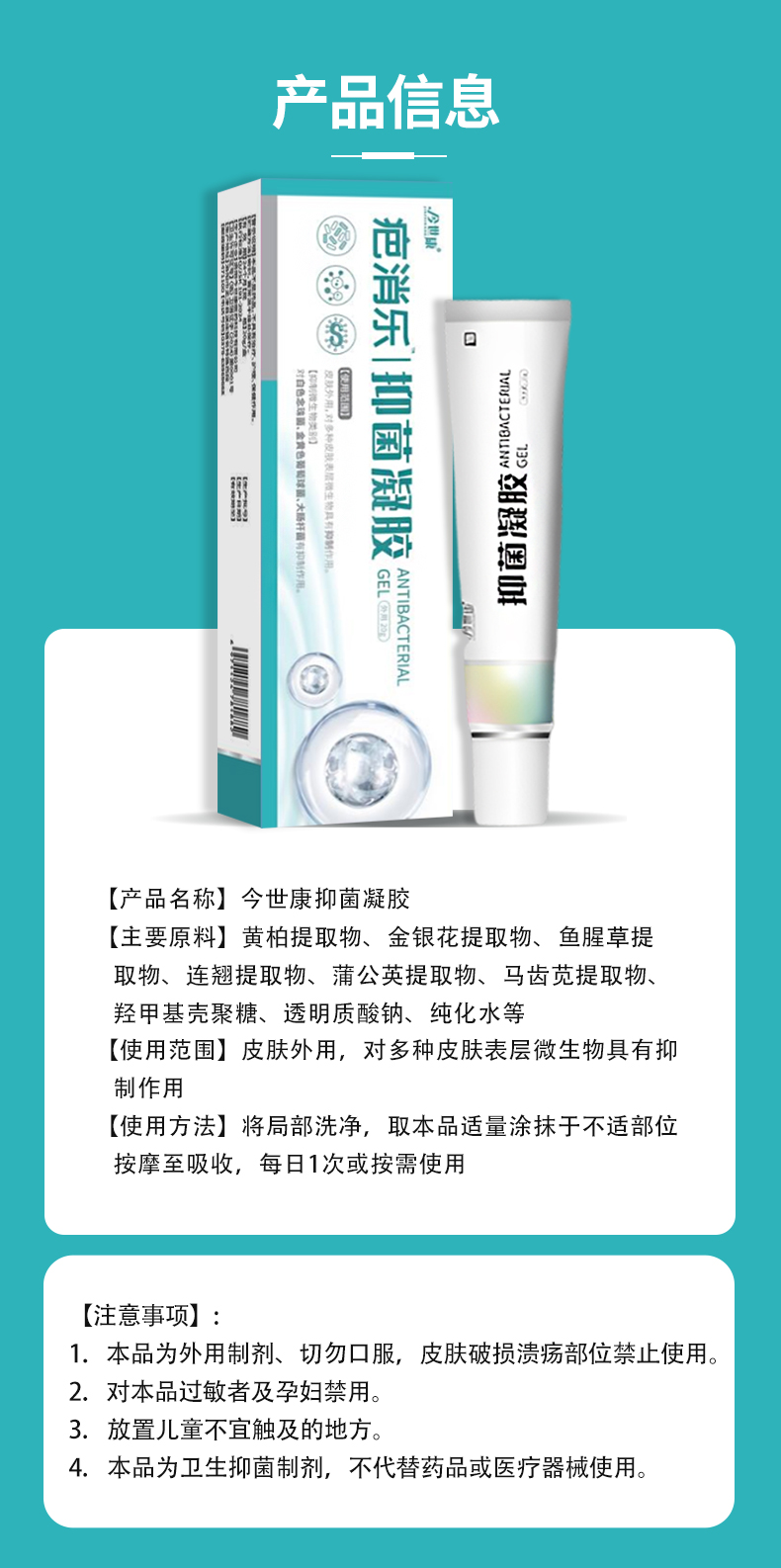 疤消樂抑菌凝膠,選多種植物草本精粹,適用于皮膚不適的亞健康人群,給皮膚多重呵護,凝膠生產廠家,支持不同材質、規格、形狀、包裝設計,滿足多種渠道需求的凝膠加工一站式oem貼牌定制服務。